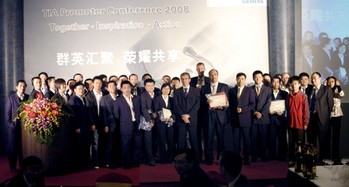 西门子2008全集成自动化区域推广会议(TIA Promoter Conference 2008)于2008年10月9日至11日在北京稻香湖景酒店顺利举行。本次会议以“群英汇聚,荣耀共享”为标语,借此机会总结了07/08财年西门子全集成自动化的业绩,并对各个区域推广经理所作出的杰出贡献予以肯定。
