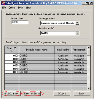 (1)对各个智能功能模块要进行初始化设置,使用实用程序包对各个智能功能模块的参数进行设置,可以免去编写梯形图的麻烦。一共有两项设置:初始化参数设置和自动刷新设置,如下图