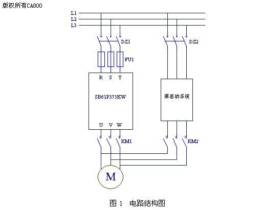 1 引言 变频调速技术因具有显著的节电效果、方便的调速方式、较宽的调速范围、运行可靠、完善的保护功能等优点而被广泛应用。济南裕兴化工总厂是一家生产硫酸的大型企业,年用电量巨大。如何节约电能已经成为该厂降低成本的重要措施。 2 送风机变频改造情况 2.1 改造前状况 该供风系统采用350kW 380V风机,靠调节风道挡板控制送风量以适应生产负荷的变化。由于投建时风机选型较大,出现“大马拉小车”情况,大部分电能被消耗在风道挡板上,从而使风机效率下降。 该系统在运行过程中还存在一些其他问题: (1) 风道挡板动作迟缓。手动运行时人员操作不灵活,容易造成风机振动,很难满足最佳调节品质。 (2) 风机挡板执行机构故障较多。 (3) 送风机在启动时,虽然采用了自耦降压启动方式,但启动电流仍然较大,电机受到的机械、电气冲击较大,经常发生转子笼条断裂的事故。 为了解决上述问题,决定对送风机控制系统进行改造,利用电机变频调速方法实现送风量控制、电机软启动,达到节能和实现稳定控制的目的。 2.2 改造方案简介 在原电机与开关之间增加一套变频装置,并保留了原有工频回路做旁路,其电路结构图如图1所示。