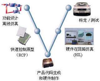 汽车车控电子产品软件开发流程是“V”形开发流程。“V”形开发流程分为五个阶段,即功能设计、原型仿真、代码生成、硬件在回路仿真-HIL、标定。