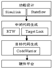 在进行向标准 C代码的转换的过程中,可以根据需要加入符合OSEK规范的嵌入式实时操作系统。在代码生产阶段使用的主要工具是CodeWarrior。通过使用CodeWarrior提供的编译器、调试器等工具,完成从标准C代码向目标硬件平台上的产品代码的转换工作。下图表示了车控电子产品的代码生成过程。