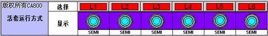 (1)活套运行方式选择,点击L1~L6切换状态(AUTO、SEMI、MAN、STOP),选择AUTO时表示活套张力平衡重由上位机设定(上位机投入时);若没有上位机设定时各活套必须选择为SEMI(半自动设定)方式,选择MAN方式表示仅在停车时靠手动起套,启车后不自动起套(不推荐使用),选择STOP时表示本活套不起套(相应的,本活套的套高闭环也不会投入)。