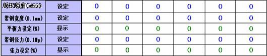 (3)张力平衡重设定区:由于张力平衡重是靠带钢厚度宽度张力值等计算得来的,所以每次换规格都要进行重新设定 L1~L6对应的分别是出口厚度分别是F1~F6的出口厚度,输入厚度单位为10um,比如F1出口厚度为16.4,请输入1640。输入后请按回车确认。带钢宽度单位为0.1mm,比如轧450mm宽的带钢,请输入4500。输入后按回车确认。带钢张力设定值单位为0.1Mp,比如3.0Mpa,请输入30,输入后按回车确认。平衡力设定(%)及张力设定(%)为程序中经过运算所得出的平衡立及张力百分比。