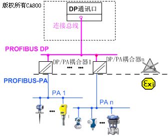 DP/PA耦合器/链接器实现PROFIBUS-DP到本安现场总线PROFIBUS-PA的转换和连接。PA本安现场总线还可以实现对本安现场总线仪表的馈电。