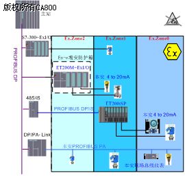 因此用户可以根据自己生产的特点,充分的利用不同防爆解决方案的特点,灵活组合几种防爆解决方案组成自己的本安防爆控制系统。图5是西门子SIMATIC本安防爆系统的综合应用。