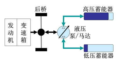 目前,并联液压混合动力车技术已经比较成熟,如图1所示。