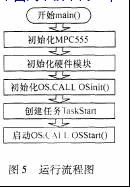 采用μC/OS- Ⅱ嵌入式实时操作系统作为软件平台,将动力总成控制系统的各控制功能模块编写为不同的任务。运行流程见图5,应用程序的人口为main(),然后是硬件和操作系统的初始化。在TaskStart任务中启动时钟节拍,调用OSStatInit()初始化统计任务,创建需要用到的其他任务,并自动允许异常和中断,OS开始正常运转,根据控制功能的需要进行任务调度,响应中断。