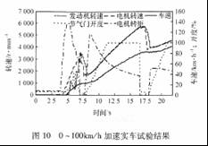 动力总成控制的实车试验结果表明,动力总成控制系统的各项控制功能和良好的控制品质,能够满足混合动力电动汽车的使用要求。