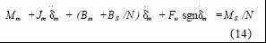 式中N为减速比;MS为驾驶员手上的操作力矩;Mm为电机的输出转矩,Mm=Mh/N;Jm和Bm分别代表系统折算到力回馈电动机的转动惯量和阻尼系数;δm为电动机转角,δm=Nδh。