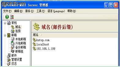 Setp1: 首先在主界面域名窗口中输入本机IP地址,将其设置为服务器,如图2邮件服务器配置窗口所示