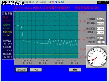 在生产过程自动控制中,PID控制是历史最长、生命力最强的基本控制方式。系统的参数整定是系统稳定运行的关键,也是自动控制理论课程的重要组成部分。在传统的教学中,PID参数对系统的影响及PID参数的整定方法是无法在课堂上进行演示的,基于NetLinx的嵌入式远程教学实验系统中的过程控制子系统则将此直观的展现出来,如图2所示。