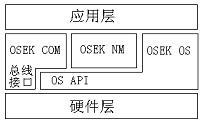 OSEK/VDX标准包括以下四部分:OSEK/VDX操作系统规范(OSEK Operating System,OSEK OS), OSEK/VDX 通讯规范(OSEK Communication,OSEK COM), OSEK/VDX 网络管理规范(OSEK Network Management,OSEK NM)以及OSEK/VDX实现语言(OSEK Implementation Language,OSEK OIL)。采用符合OSEK/VDX标准的嵌入式实时操作系统可以提高产品代码的复用率、降低开发成本、缩短产品开发周期。使用兼容OSEK/VDX标准的嵌入式实时操作系统的应用架构如下图所示。