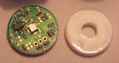 在传感器的结构设计中,利用电路板将壳体内部的空间分隔为两个部分(参见图2),不锈钢膜片1和电路板4之间的空间是硅油灌注空间,为减少硅油灌充量,在此空间安放了陶瓷环片5,同时采用先焊接不锈钢膜片后灌充硅油的工艺,将电路板和陶瓷环片放入壳体中,然后利用氩弧滚焊将压环和不锈钢膜片焊接完成,再采用真空灌充技术完成硅油的灌充。