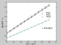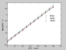 图5表示样品1、2、3的输出特性,通过对三个样品的比较,我们可以看到三个压力传感器输出信号随压力变化的趋势基本一致。