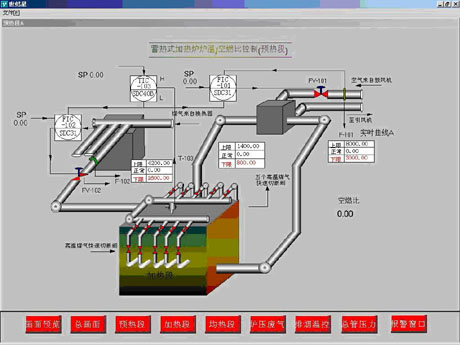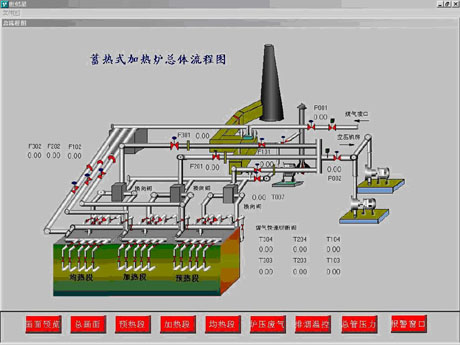 钢铁厂蓄热式加热炉自动化控制系统,在生产工艺包括预热、加热、均热、炉压/废气温度控制、排烟温度控制,共五大环节,通过计算机控制,提高生产效率,降低生产成本。