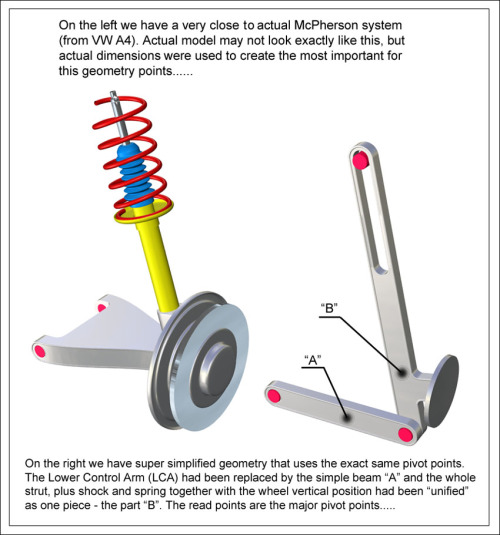 麦弗逊式独立悬架的结构就是这么简单,两部分组成:支柱式减震器和A字型下托臂