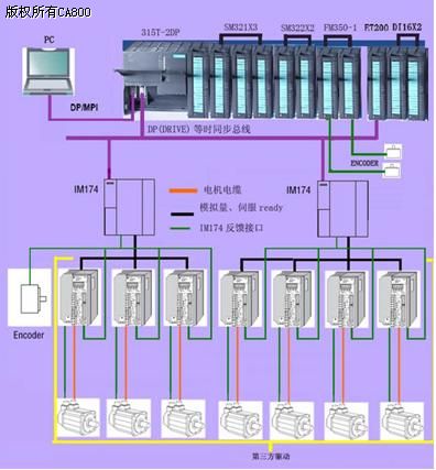 3. SIMATIC T-CPU的DP (DRIVE) 采用等时同步方式与IM174相连,采用总线的方式,连接伺服驱动器,组成分布式的运动控制系统,使定位控制更可靠与精确。IM174可以很好的兼容第三方的伺服驱动器,为使用第三方的驱动器, 搭建了一个人性化的运动控制系统开发平台;