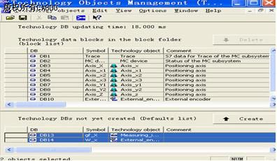 4) 调整好轴的参数:进入Technology objects Management界面,按照提示一步一步地往下进行。还可以将SIMATIC T-CPU处于STOP状态下,将PLC的控制权交给Technology objects Management工具软件,非常方便地对轴进行调试、监控。同时要调整好伺服驱动器的增益等参数,否则系统也会报警。