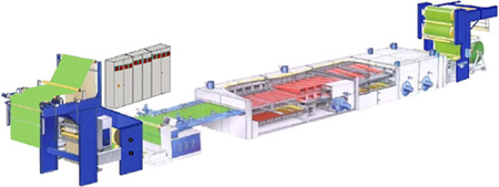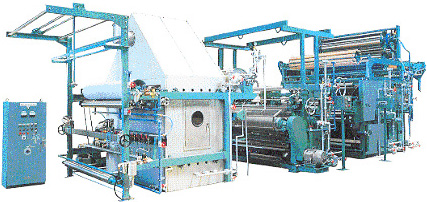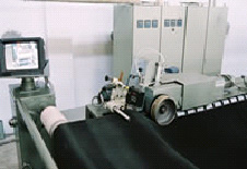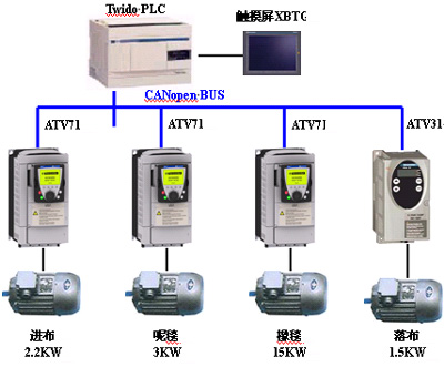 | 概述 工艺流程:轧车、上超喂、下超喂、主链、毛刷、出布、落布. ![]() 工艺说明: ■拉幅工艺:对织物纬向施以一定的拉力,消除织物在前处理及染色印花过程中因经向张力较大而产生的布边不齐、纬纱歪斜、幅宽不等等缺点。 ■定形工艺:将织物在适当张力条件下,加热到所需温度并保持一定时间,使纤维分子链在新的位置上重新调整,然后以适当速度冷却,将织物受热变化的状态固定下来。可以消除织物上原有的皱痕,还能防止再产生新的褶皱。 ■传动系统:全机主要有7个同步传动单元(见系统框图,其中,主链分传动),4台循环风机(8室烘房),2台排风机。 ![]() ■技术要求: □左右主链需要速度及位置同步,避免织物纬斜。 □10段门幅控制,调幅精度控制在±2mm之内。 □温度控制,8路PT100信号输入PLC。 □张力控制。 控制系统框图 ![]() 控制特点和方案说明 整个系统采用CANopen通讯数字量控制,主要控制如下: ■传动部分:交流变频传动。 ■控制部分:两台HMI(机头机尾)、ATV31变频器、8路AI、12路40kHz高速计数、CANopen总线。 ■主链一主一从,采用编码器信号反馈,PLC每20ms对从主链编码器进行采样,与主主链编码器信号进行比较,根据反馈脉冲差值调整从主链速度,之后清零主从脉冲值,避免累计误差产生,以保证主从主链的速度同步。在HMI上设有从机速度点动修正。 ■除进布和出布侧外,每室烘房也设有门幅控制,全机共有10段调幅,为了使门幅误差在工艺要求之内,采用编码器双向计数控制。 ■烘房温度直接由8路PT100模拟量输入PLC(控制精度12位),并由PLC编程进行PID调节,在HMI上显示各段烘房温度并可调整。 ■各传动单元之间无张力传感器,因此在HMI上都设有速度微调。 ■上下超喂变频外接制动电阻,避免在负超喂过程中的能耗制动引发变频器频繁故障。 ■各单元工艺速度关系: V上超=V主×(1+K1%) V下超= V上超×(1+K2%) V轧车= V下超×(1+K3%) V毛刷= V上超×(1+K4%) V出布= V主×(1+K5%) V落/打= V出布×(1+K6%) 预缩整理联合机控制方案 概述 工艺流程:进布、预缩、落布. ![]() 工艺说明: 织物在湿、热情况下尺寸产生收缩,以恢复纱线的平衡弯曲状态,使织物原来存在着的潜在收缩在成品前预先缩回,以符合纺织品规定的缩水率标准,防止纺织品加工成服装后,穿着洗涤时产生收缩。 ■传动系统:同步单元(变频控制) □进布电机-2.2Kw □呢毯电机-3Kw □橡毯电机-15Kw □出布电机-1.5Kw ■其他传动(直接启动) 橡毯模辊、压辊、橡毯张力辊等 ■技术要求: □工艺车速:10-100m/min □预缩率:<16% 控制系统框图 ![]() 控制系统说明 |
