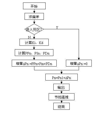 其中a为选择开关的切换值 4.2 PI数字控制器 根据偏差的比例(P)、积分(I)、微分(D)进行控制(简称PID控制),是控制系统中应用最为广泛的一种控制规律。本系统中采用的是增量式PID控制器其计算公式如下: