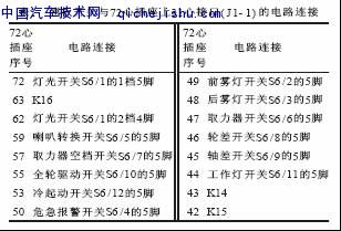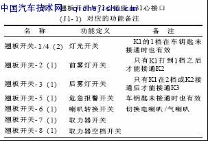 左侧信号灯及组合开关与72心插座上17心接口(J1-3)的对应关系如表5所示。