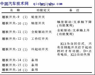 翘板开关与72心插座上31心接口(J1-1)的对应关系如表1、表2、表3所示。