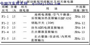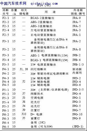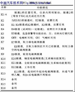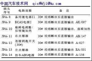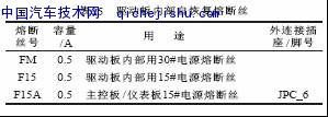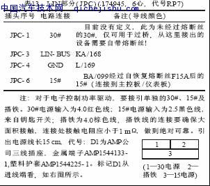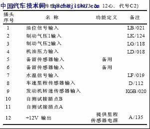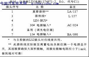仪表板共有2个插座,一个为LIN连接,另一个为传感器连接。LIN连接内容见表16。传感器连接内容见表17。