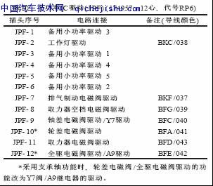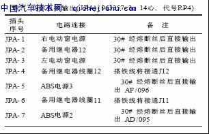 功率连接输出部分(JPA、JPB、JPD、JPF、JPG、JPH)分别见表7、表8、表9、表10、表11、表12。其中涉及JPA、JPB内容设计成独立于电子控制模块的单独PCB板块,以便于更换。