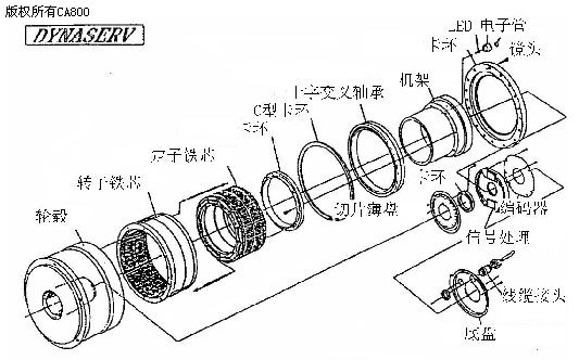 DD马达结构为外转子形式,与内转子结构的普通马达不同,特别是其采用的向心轴承可承受一定的轴向力。其编码器为光电型编码器高解析度,一般为500,000ppr 以上,并带有原点和限位输出。由于高水准的制成工艺保证和高精度的测量反馈,此种马达的定位精度可达秒级。(如 DM1B 系列的绝对精度为 15 arc-sec,重复定位精度为1 arc-sec)。