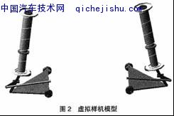 所建立的虚拟样机模型如图2所示。在本次仿真分析中,将建立一个虚拟激振台,设置上下激振位移为50mm,以左右车轮同步上下跳动来计算悬架跳动过程中主要性能参数的变化规律。