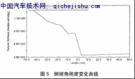 侧倾角刚度:图5为侧倾角刚度变化曲线。从图中可以看出,压缩时侧倾刚度变化不大。