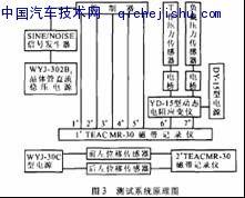 测试和记录系统由磁带记录仪、动态电阻应变仪、稳压电源、信号发生器、二踪示波器、压力传感器及位移传感器等组成。试验中通过仪器测取的参数为压力、角位移和线位移。液压缸的流量通过分别安装在前左轮和后左轮的2个转向缸上的位移传感器的位移计算得出。测试系统的工作原理如图3所示。