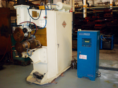 被焊材料在实施焊接之前必须进行清洁处理,清理方法分机械清理和化学清理两种。常用的机械清理方法有喷砂、喷丸、抛光以及用纱布或钢丝刷等。被焊材料表面的油污和锈斑会使电极与工件之间的电阻增大、焊点不牢固及焊接过程中产生飞溅,使焊接质量下降。例如在缝合油箱(如图1)或暖气片之类要求密闭的工件时,更应将被焊材料的表面处理干净,因工件需要缝合焊接一周,如果有一处没有处理干净,就会在这一处出现缝合不牢,在工件试压过程中发生漏气现象。对于此类焊接要求较高的工件需用化学清理,用清洗设备配合高温清洗液将工件清洗干净才能够进行焊接生产。用于缝合油箱的缝焊机如图2所示。