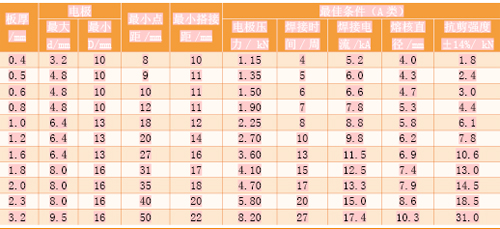5.要求设备操作人员熟悉电阻焊的工作原理(如图5)和焊接技术参数的调整方法。焊接参数的选定主要由3个变量决定,即焊接电流、焊接时间和电极压力(如表所示)。点焊时各参数相互影响,调整好以上3个变量的技术参数就基本保证了焊接质量的稳定。