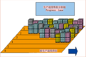 当卡车把所有零部件卸下后,经过验收就会转送到下一个物流区域——进度吸收链,也就是P-LANE。在说明P-LANE的平准化前,先说明一下P-LANE的作用(见图5):