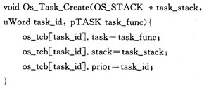 ①建立任务Os_Task_Create()算法。任务创建函数代码如下: