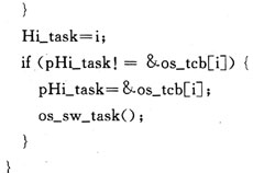 任务级切换函数需要改变程序计数器(PC),所以必须通过软中断实现。在软中断服务函数中改变当前运行任务的TCB指针到最高优先级就绪任务,执行中断返回指令在新的任务堆栈中弹出最高优先级任务的PSW和PC指针,从而完成任务切换。