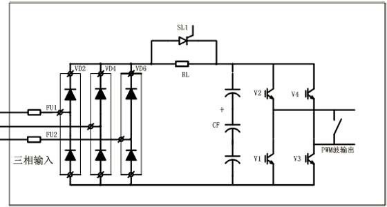 功率单元主要由输入熔断器、三相全桥式整流器、预充电回路、电容器组、IGBT逆变桥、直流母线和旁通回路构成,同时还包括电源、驱动、保护监测、通讯等组件组成的控制电路。单元结构如图3所示。各功率单元具有完全相同的结构,有互换性。