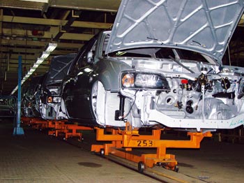 主要是将待装配的车身运送到各生产工序,实行装配生产。