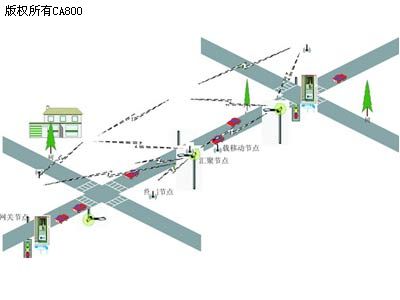 在无线传感器网络部署中,汇聚节点可以安装在路边立柱、横杠等交通设施上,网关节点可以集成再交叉路口的交通信号控制器内,专用传感器终端节点可以填埋在路面下或者安装在路边,道路上的运动车辆也可以安装传感器节点动态加入传感器网络。