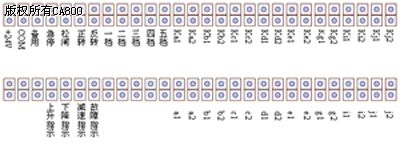 +24V,COM,急停,松闸,正转,反转,一档-五档,上升、下降、减速、故障指示分别接变频器对应控制回路端子。远控装置接线端子示意图如图6示: