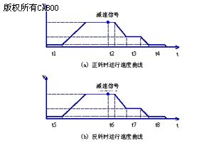 变频器接收到系统给出的减速信号后,启动机内的减速程序,按照设定要求将提升机的运行速度逐渐降低。