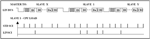 LINSCI可以集成在8位MCU中,可实现标头侦测(Header Detection)、指示器(Identifier)和非相关字节过滤(Irrelevant Byte Filtering)、延伸性错误侦测(Extended Error Detection)和再同步化(Resynchronisation)等功能。其作用是使从设备的LIN总线功能更有效地发挥。