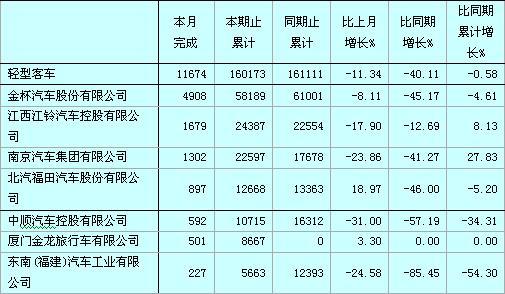 2008年前11个月主流轻客企业销售表(单位:辆)
