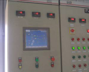 装有工业组态软件的触摸屏电脑通过ModoBUS/TCP网络与ADAM-5550KW 通讯,实现数据采集与控制。触摸屏电脑显示系统流程图画面,监控机组的工作状态和阀门的位置。实现系统的自动控制并具有手动操作的功能,提供报警显示和系统故障分析,采用图形化的人机界面,将工艺流程直观的显示在屏幕上,给操作人员提供了一个友好的界面。 ADAM-5550KW进行底层的控制,两个网口一个和TPC-1260通信,另一个和另一台ADAM-5550KW通信,进行两组设备互为备用。