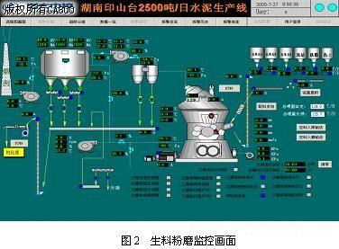 石灰石破碎及输送系统的控制难点在于石灰石破碎机喂料量的自动控制,以破碎机功率的变化来自动调节板喂机的速度,使其速度保持在要求的范围内运行,不致于由于板喂机速度过高而使石灰石料仓的料卸空,来料直接落在板喂机上,对设备起到一定的保护作用。 3.2 生料制备系统