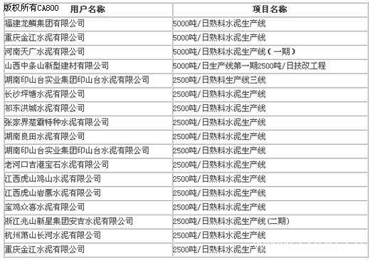 截至目前,中控在水泥行业已经取得了大量应用业绩,用户涵盖了国内多家大型水泥生产企业(如安徽海螺集团),以下是我们在不同规模水泥生产领域的部分典型项目: