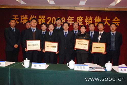 天瑞仪器公司领导与2008年度销售冠军、优秀大区经理合影留念