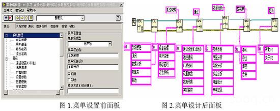 在自定义菜单中,根据需要创建的菜单项,完成菜单定制后,对每个子菜单设计对应的SUBVI,并且每个子VI 都有自己的用户界面。新建一个文件夹,把设计过程中需要保存的东西都保存在这个文件夹下。