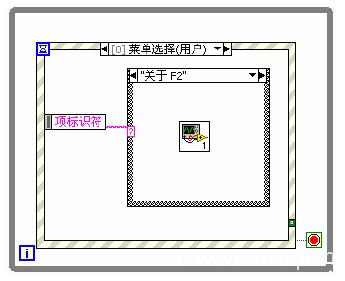 编写菜单响应程序,利用LabVIEW 提供的菜单选择节点获取所选菜单项,然后在一个条件结构中编写与菜单选项对应的功能程序。VI 运行时,条件结构根据菜单选择节点返回的菜单执行相应的功能程序【2】